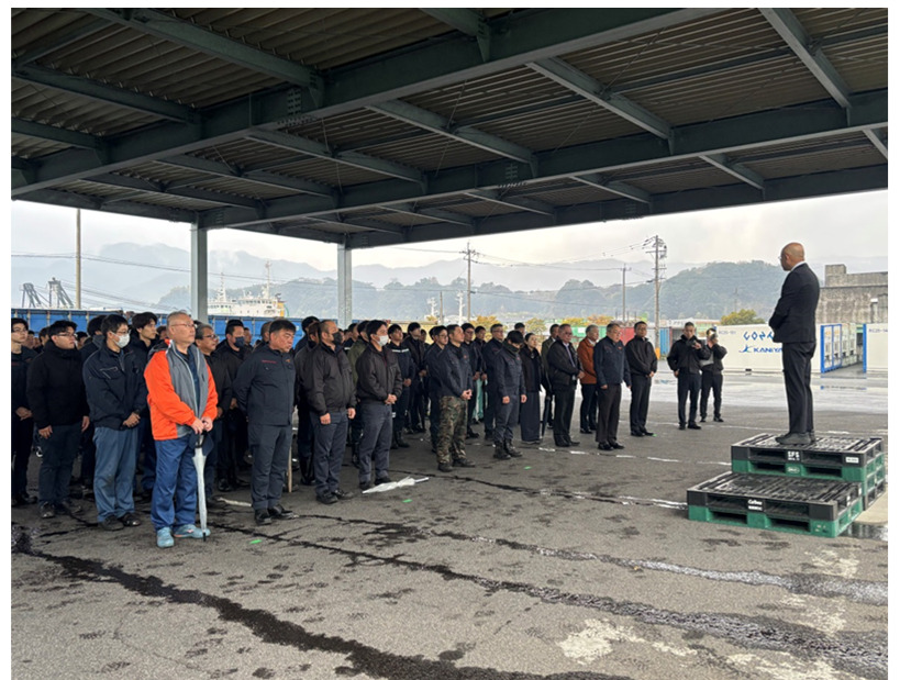 一つ目は、私たちの事業の根幹である「安全」についてです。 船舶、輸送車両、重機、そして危険物を取り扱う私たちの業務は、常に危険と隣り合わせにあります。万が一、重大な事故が発生すれば、それは仲間やその家族の生活を脅かすだけでなく、企業の存続そのものを危うくします。 「安全こそが最大のサービスであり、経営の基盤である」ということを今一度、一人ひとりが深く胸に刻み、今年一年、安全第一で業務に邁進してください。