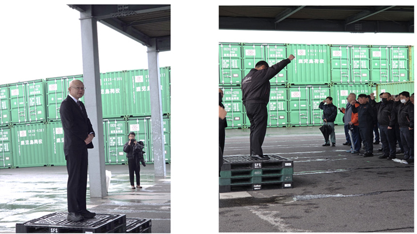2026年1月5日(月)、鹿児島荷役海陸運輸株式会社は谷山営業本部において「2026年 年頭式」を執り行いました。 式典において、代表取締役社長 杉木保隆が社員に向けて述べた年頭挨拶の要旨を以下の通りお知らせいたします。